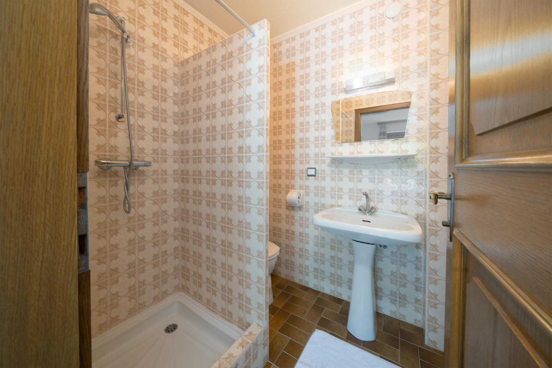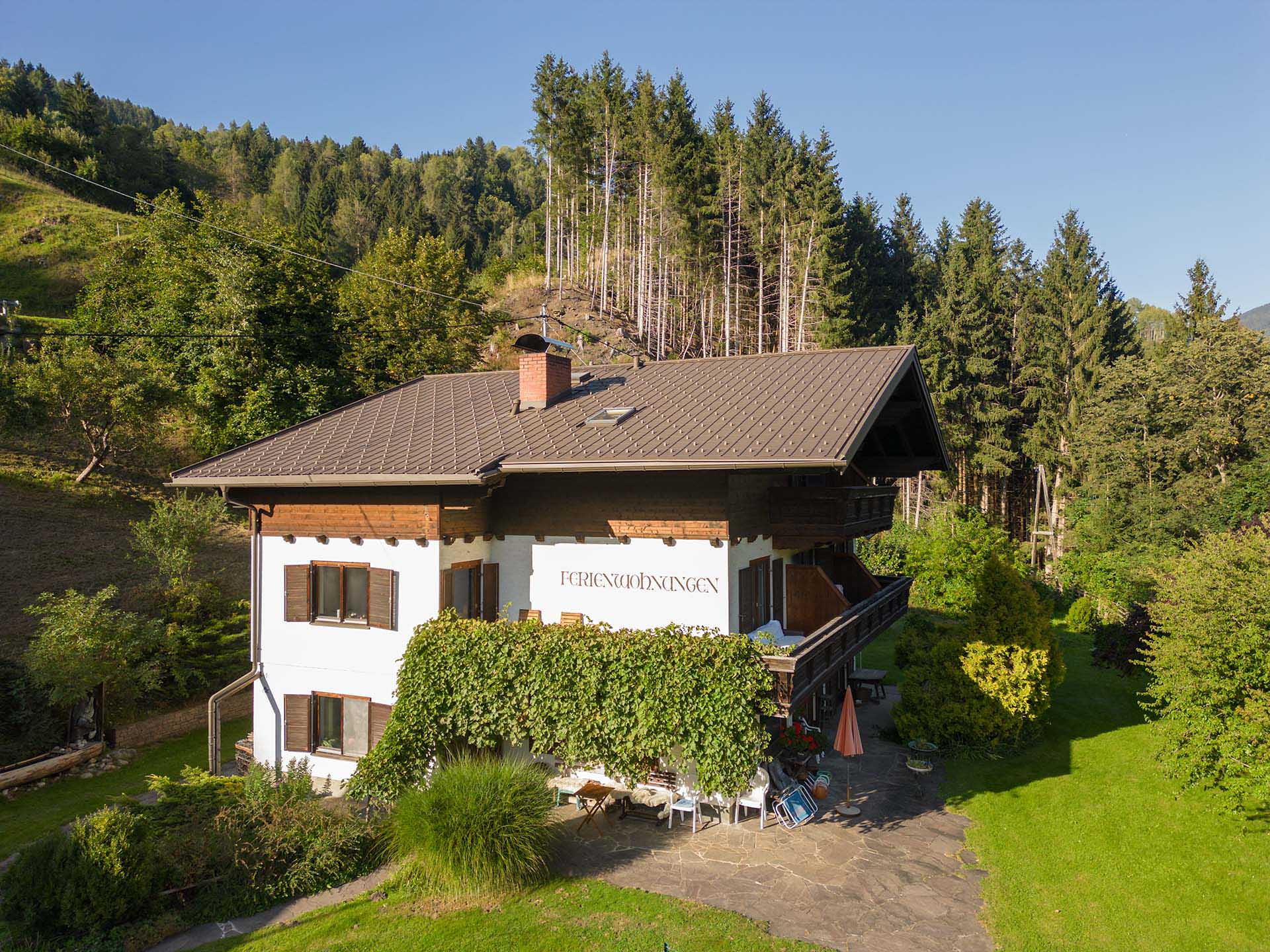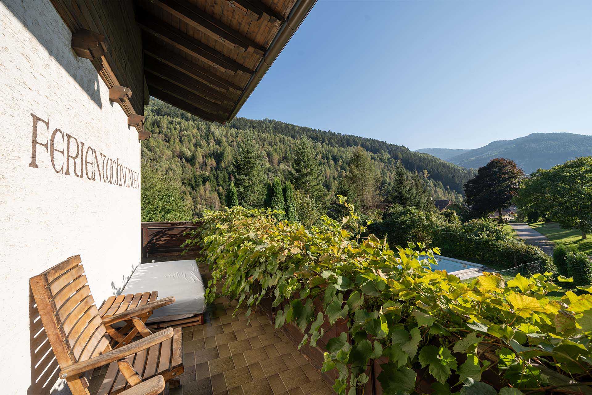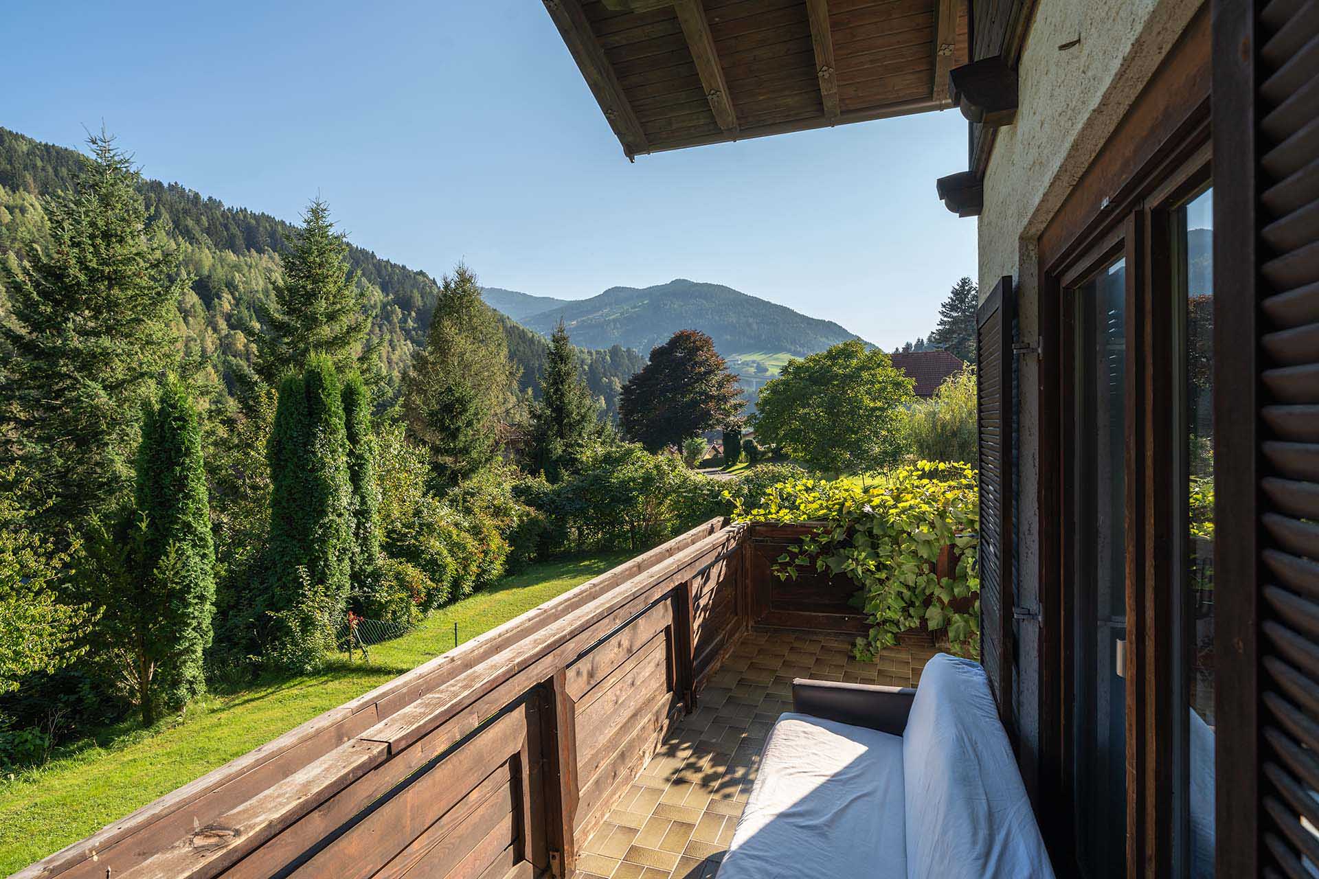 Hier finden Sie 2 Appartementzimmer mit Küche, Badezimmer mit Dusche und WC, sowie 2 Schlafzimmer mit Bad und WC, die jeweils mit einem überdachten Balkon auf der Südseite oder Westseite ausgestattet sind. Diese bieten einen malerischen Ausblick auf das Grundstück und die umliegenden Berge. Darüber hinaus steht ein zusätzliches Zimmer mit eigenem Badezimmer zur Verfügung.