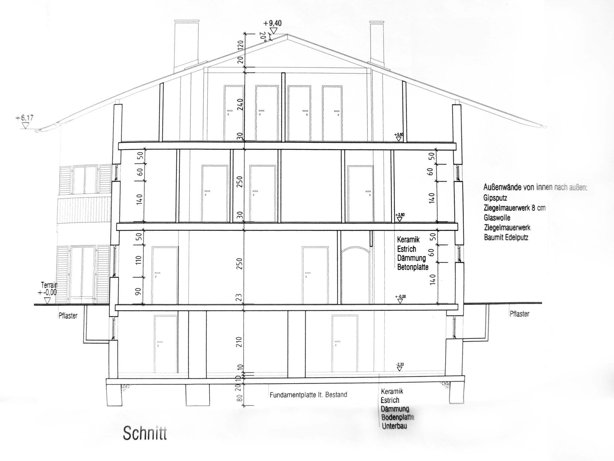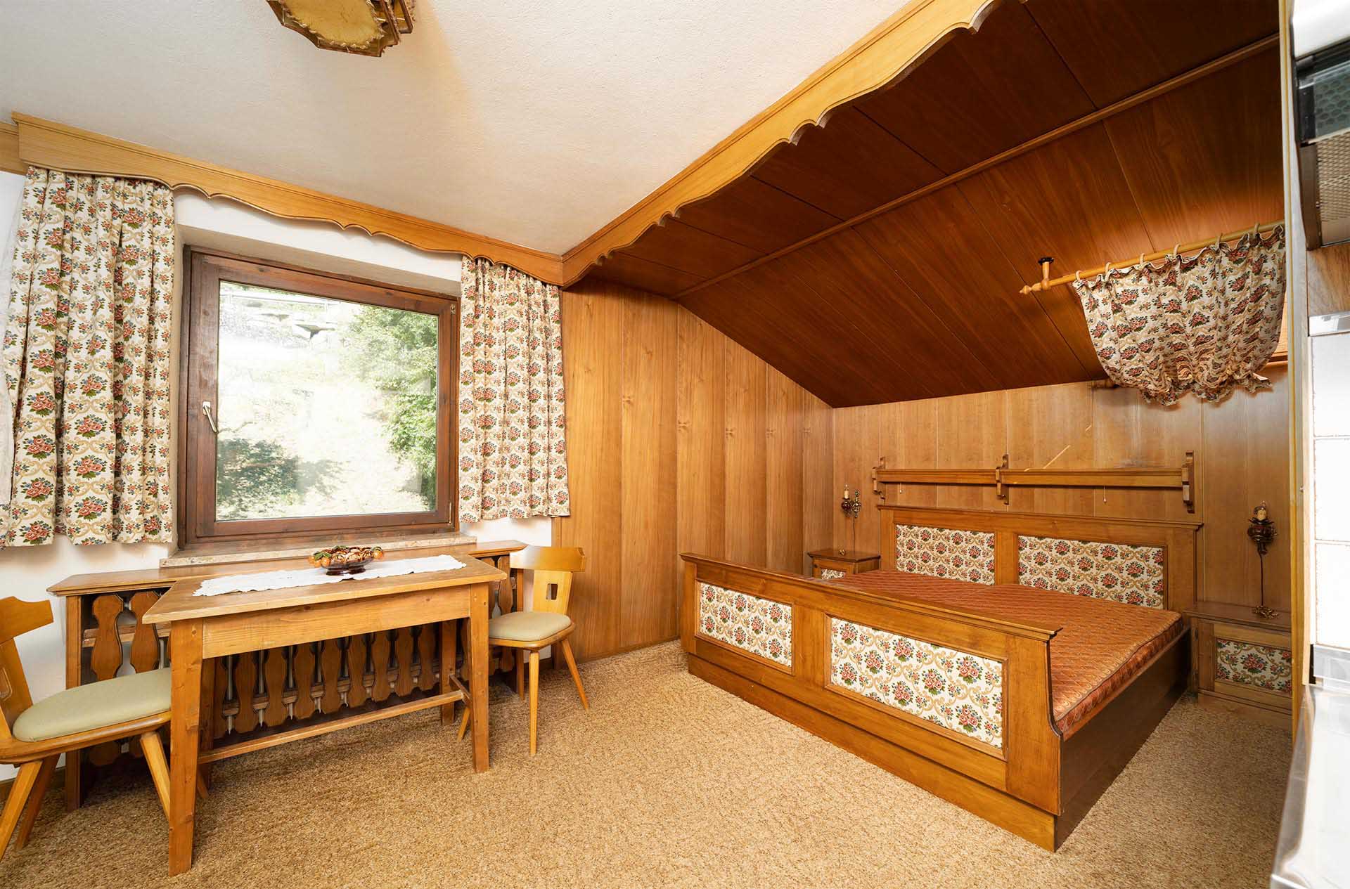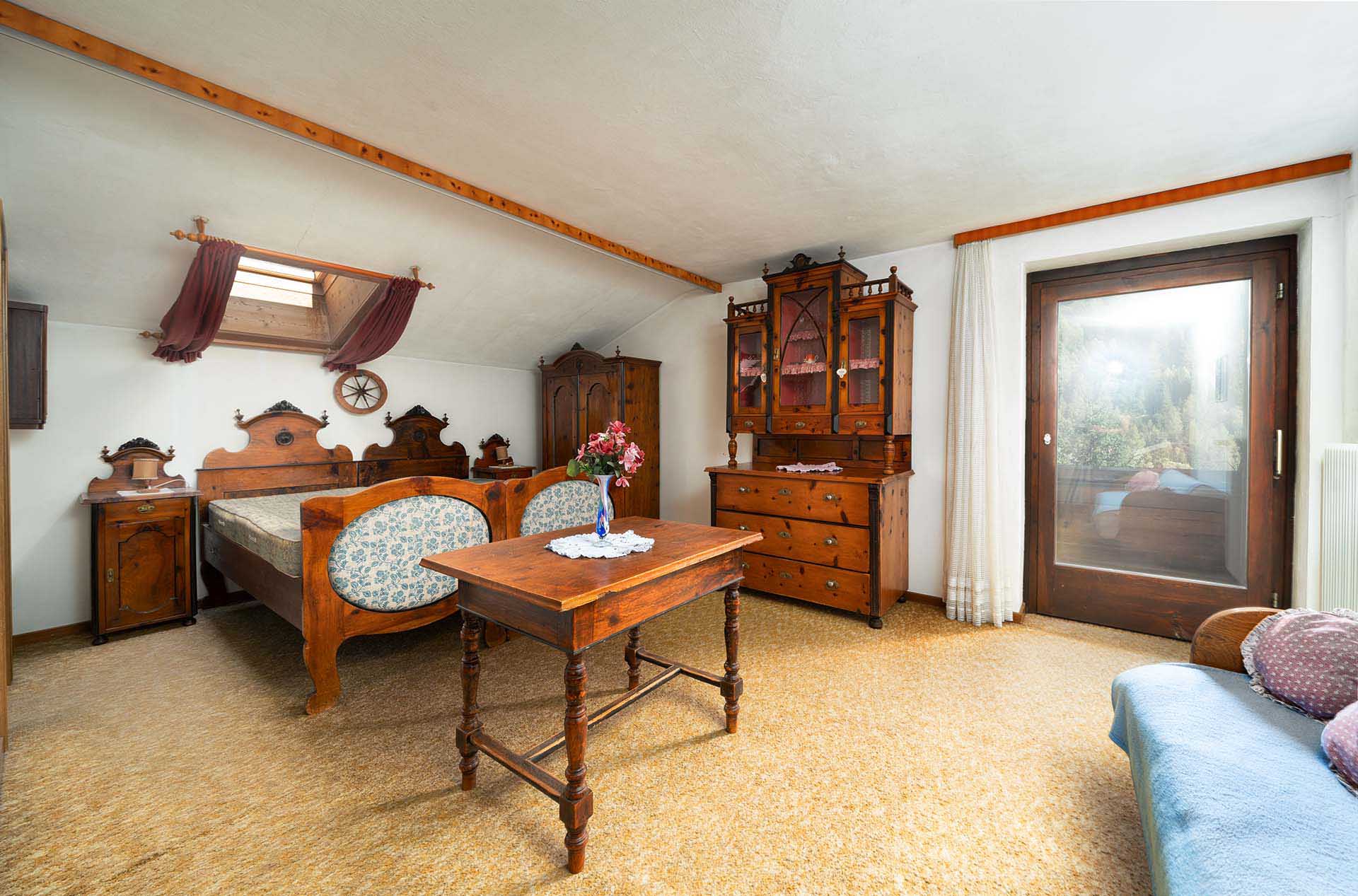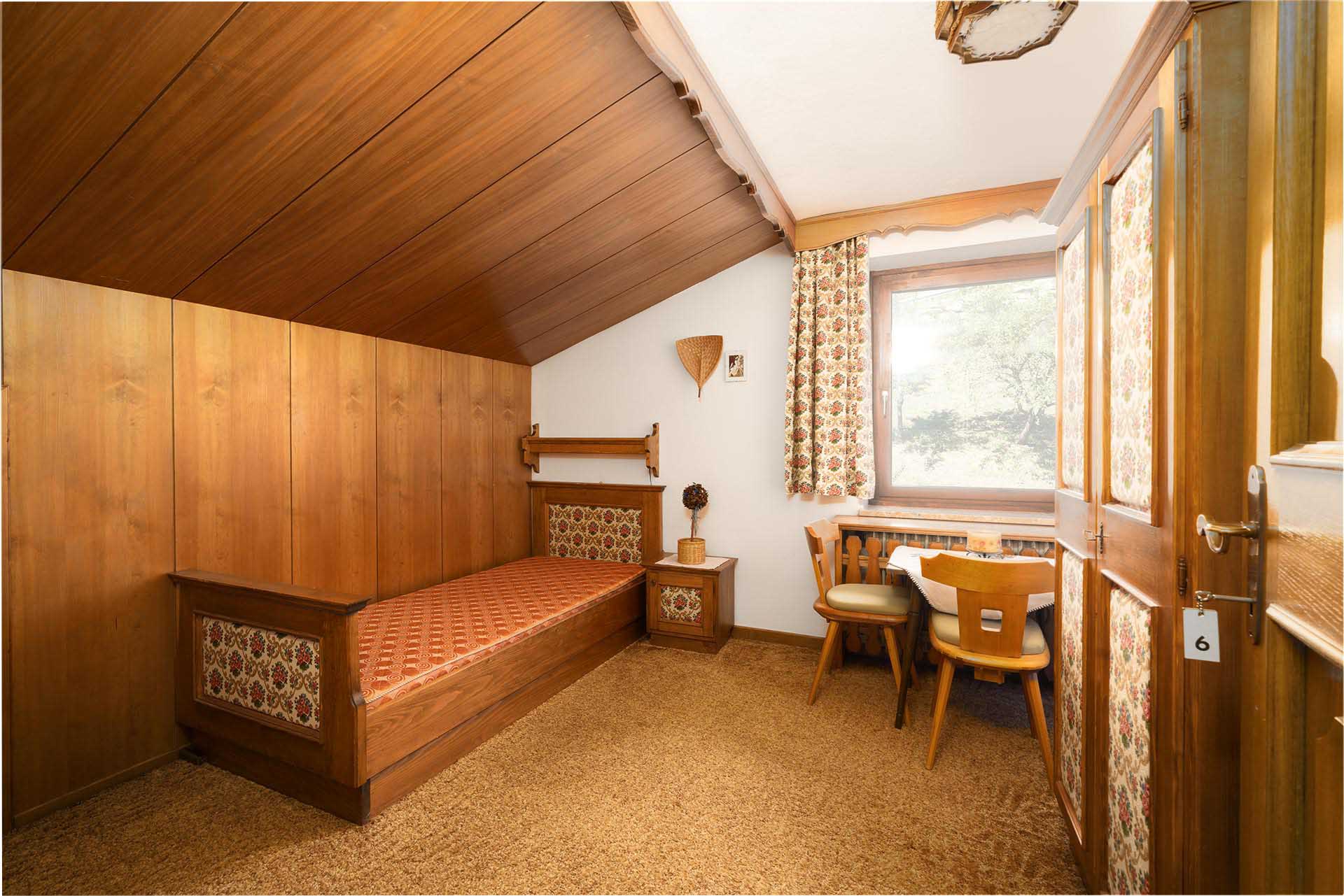 Im Dachgeschoss sind drei Garconnieren vorhanden, wovon zwei über überdachte Balkone verfügen und nach Süden ausgerichtet sind. Ein zusätzliches Einzelzimmer bietet Flexibilität. Beide Obergeschosse bieten eine praktische und gut durchdachte Raumaufteilung.